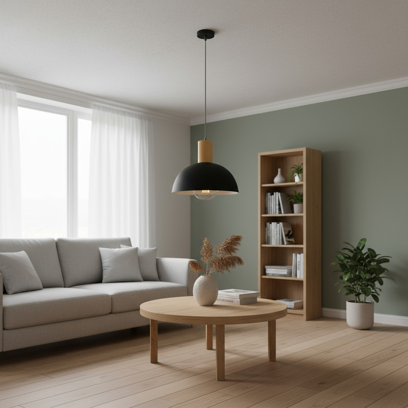 Colgante Nórdico, Escandinavo 1 luz media esfera con cono de madera