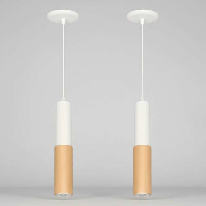 Combo x 2 Lampara Colgante Cilindro con madera 1 luz, Estilo Nórdico, Escandinavo.