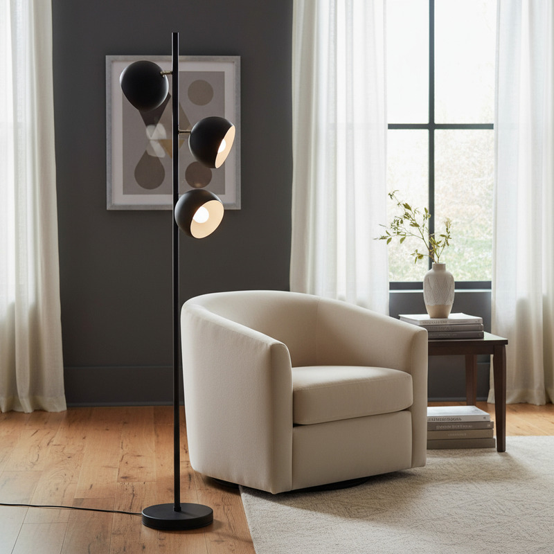 Lámpara de pie de 3 luces moderna, con cabezales movibles.
