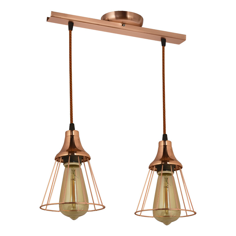 Colgante 2 Luces de Techo con Jaula Conica, Vintage.